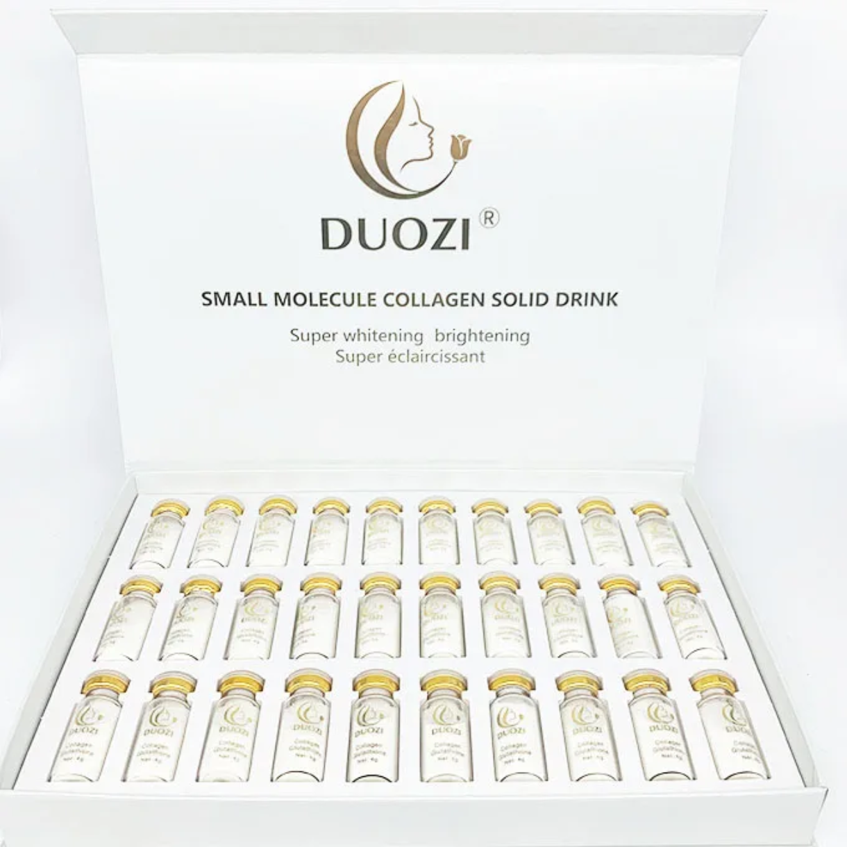 Boisson solide de collagène à petites molécules Duozi, un complément de beauté et de bien-être pour améliorer l’élasticité de la peau, à réduire l’apparence des rides et à favoriser un teint plus lumineux.