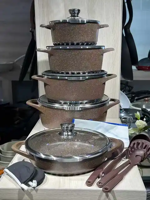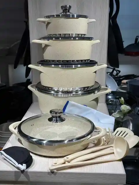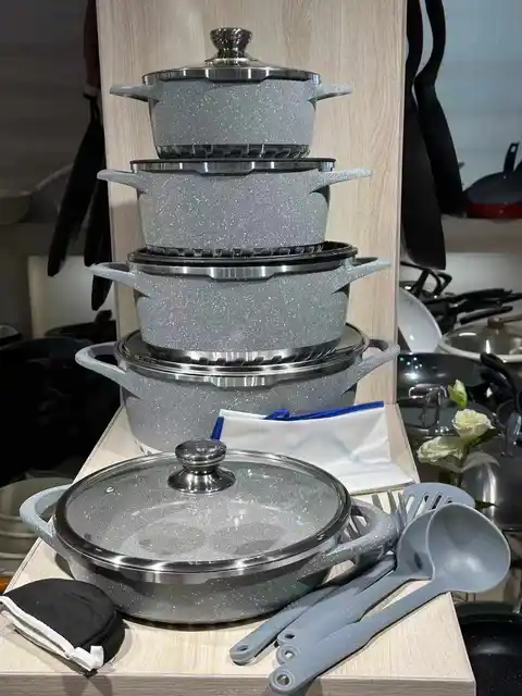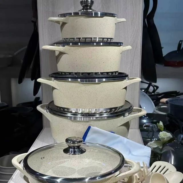 Casseroles 17 pièces antiadhésives en granit, nouveau moulage sous pression en aluminium, grands accessoires de cuisine, ustensiles de cuisine