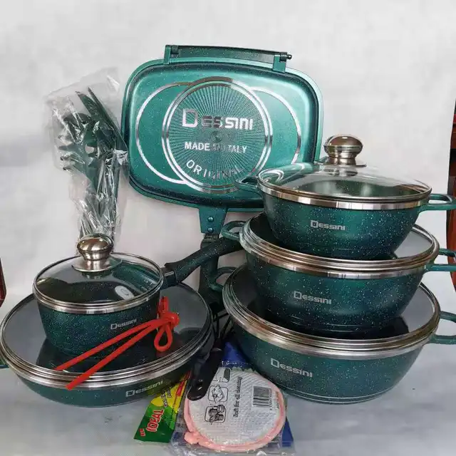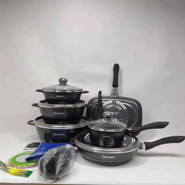 Ensemble de 23 pièces en marbre pierre granit antiadhésif, casseroles de cuisine en aluminium moulé sous pression batterie d’utilisation de cuisine en verre.