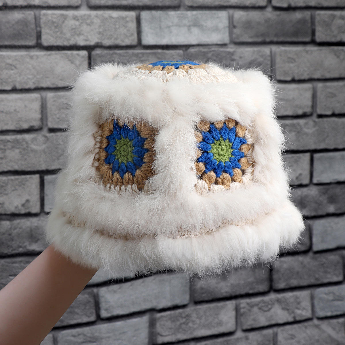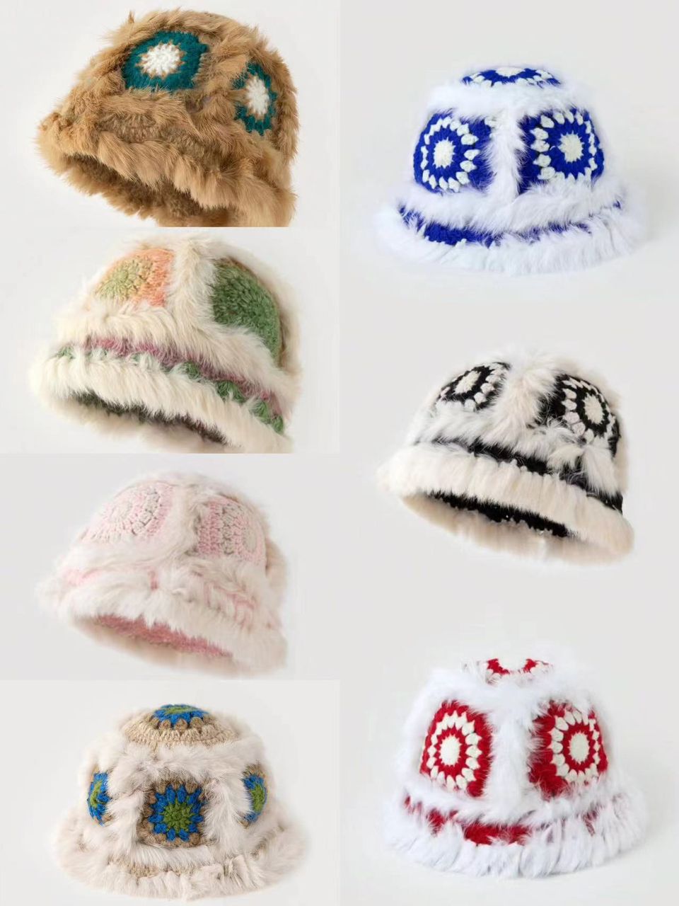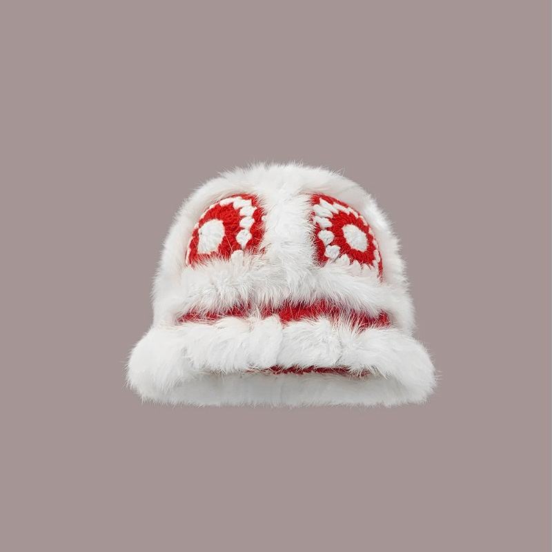 Chapeau en peluche tricoté en cheveux de lapin pour femmes.