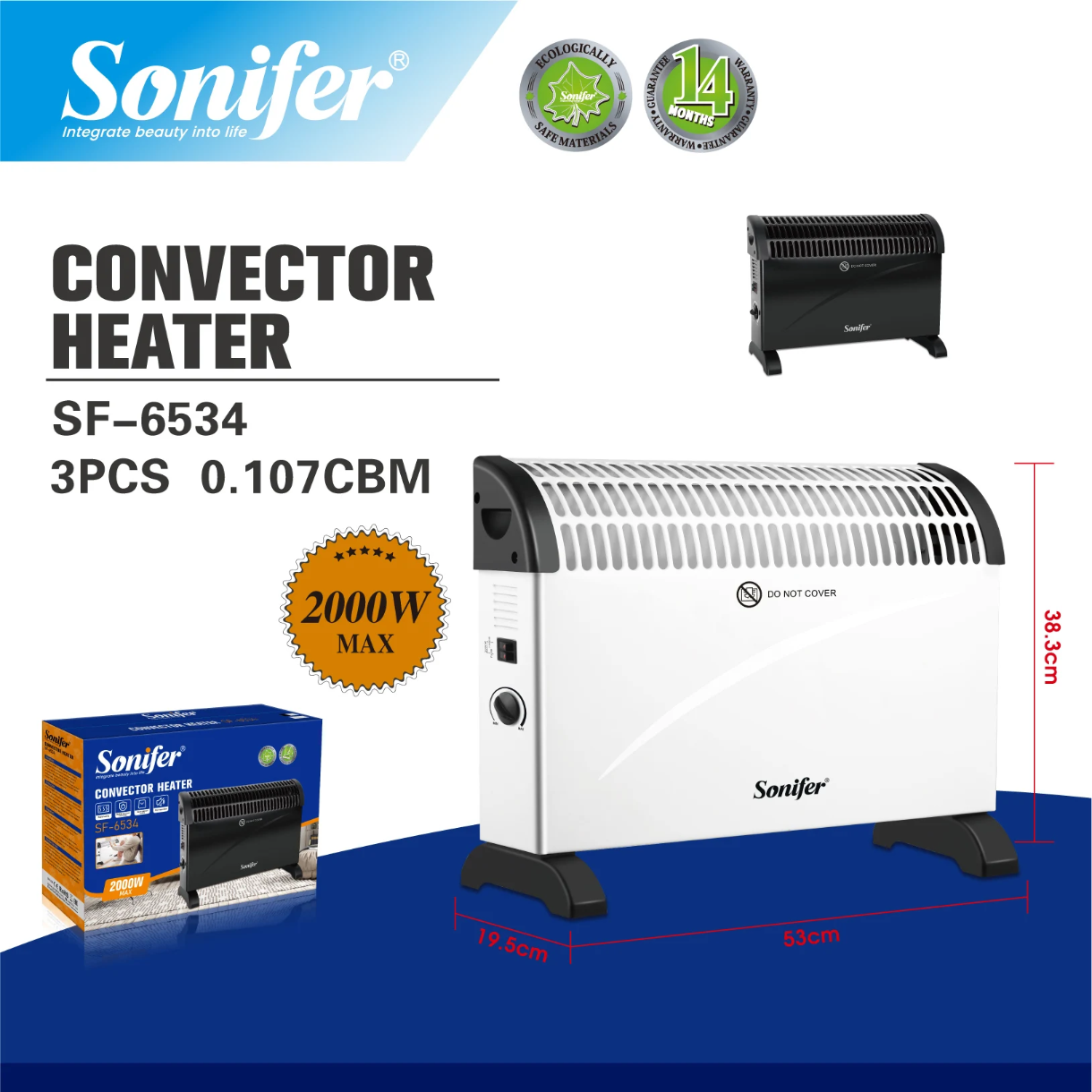 - Trois niveaux de puissance réglables : 750 W – 1250 W – 2000 W
