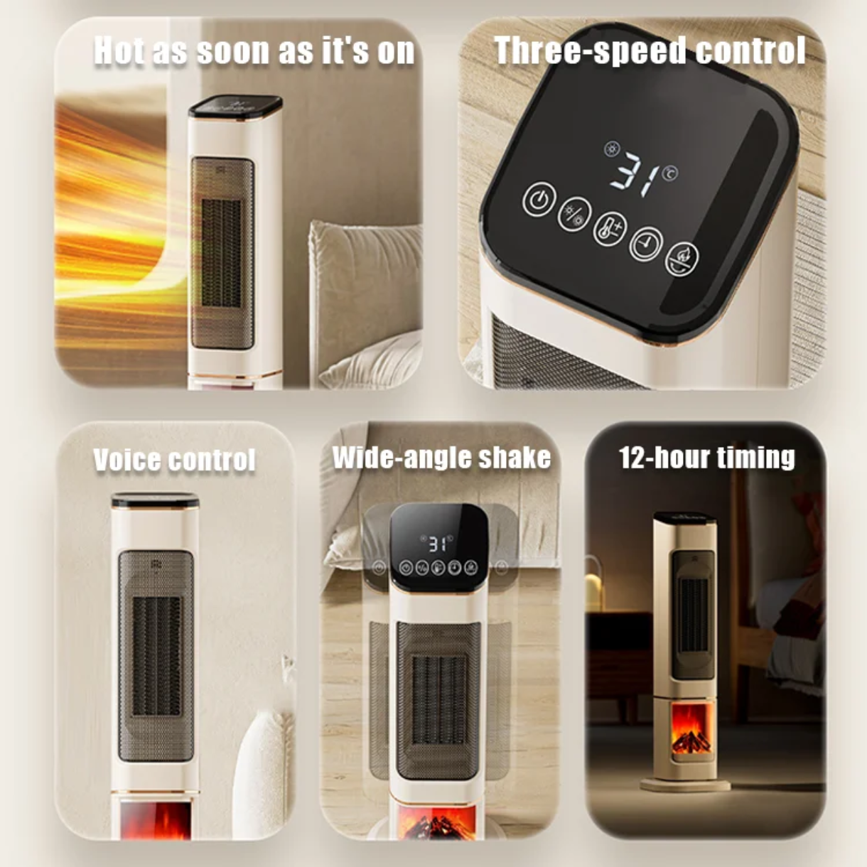 - Oscillation automatique à 60° de gauche à droite avec effet d’éclairage d’ambiance cheminée