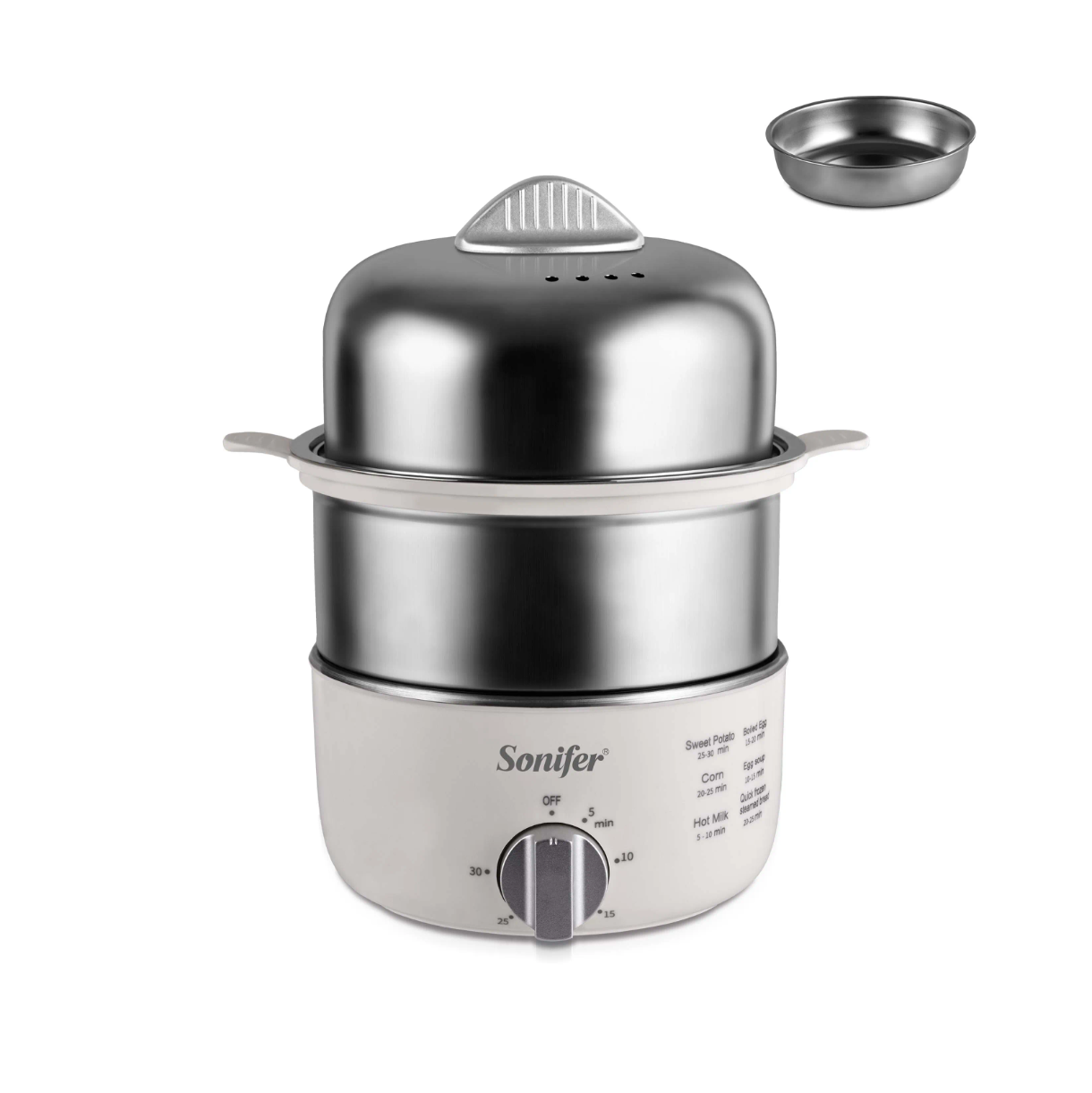 - Cuiseur vapeur haute capacité pour plusieurs ingrédients. Comprend un panier vapeur en acier inoxydable 304.