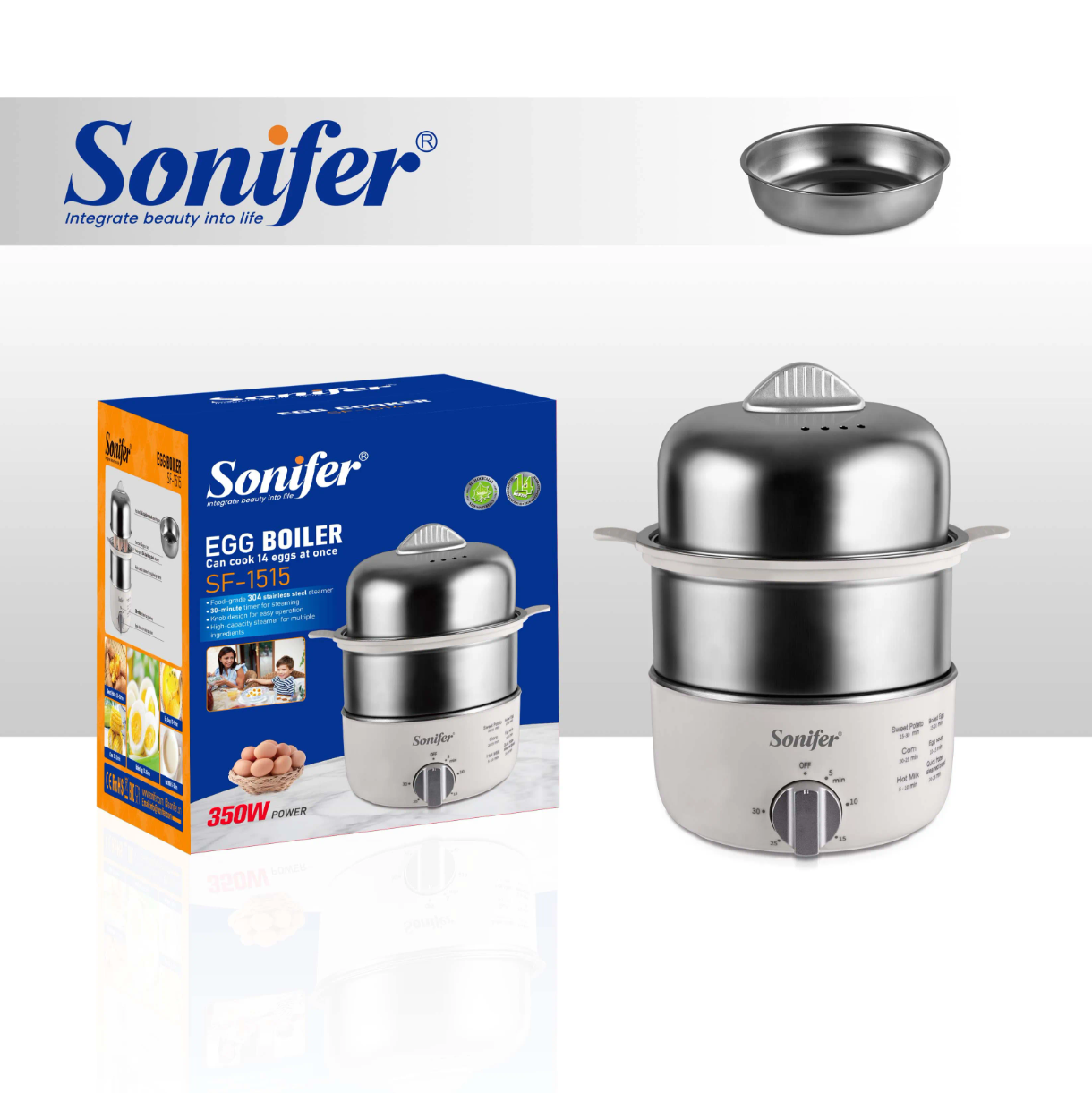 - Peut cuire quatorze œufs à la fois. Minuteur de 30 minutes pour la cuisson vapeur.