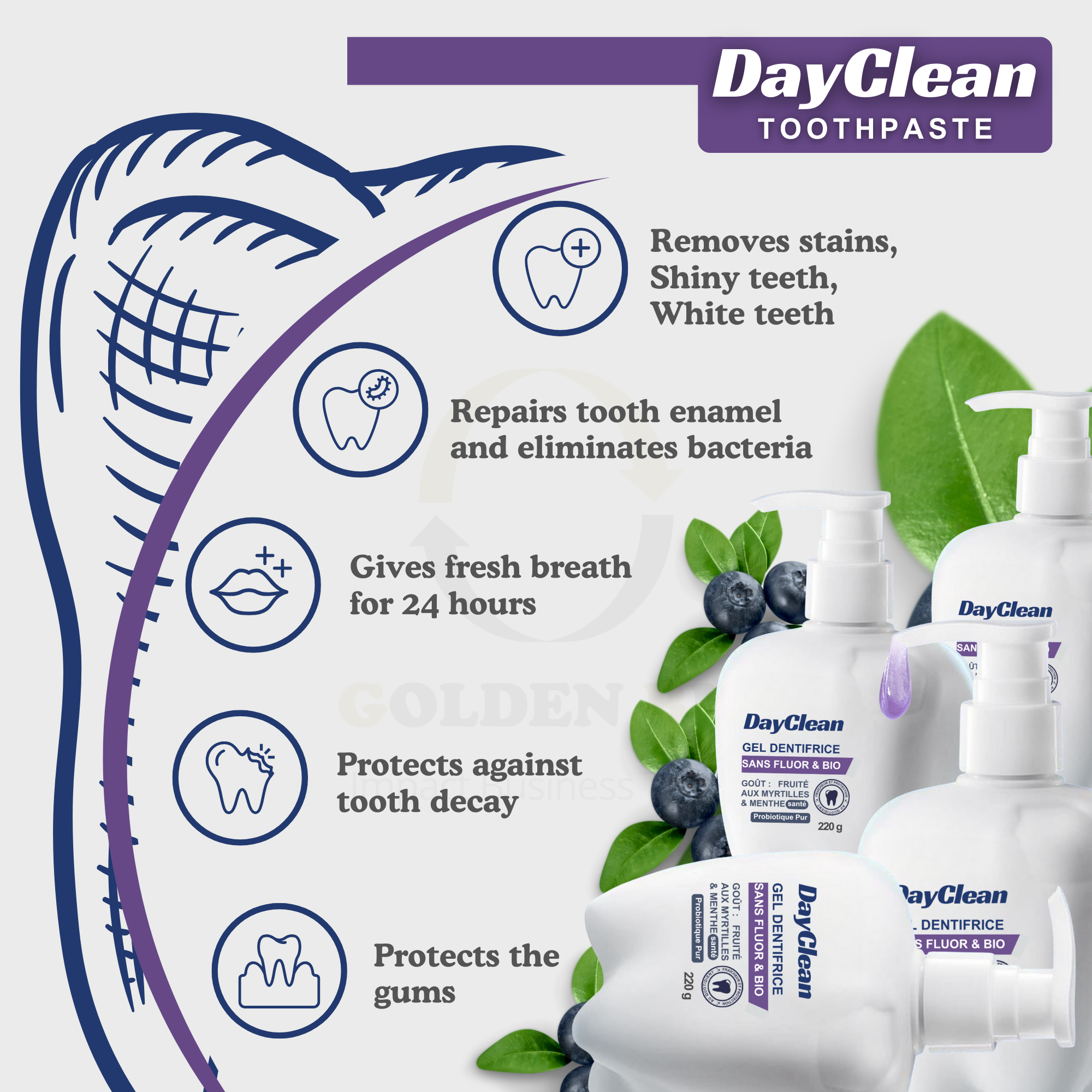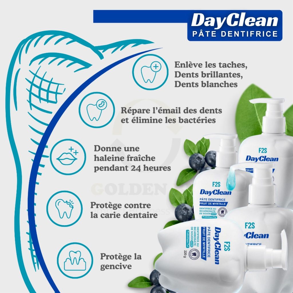 DayClean, pâte dentifrice au fruit de myrtille, lutte contre les caries dentaires et le cancer de la bouche. Commande de 14 cartons de 72 pièces (1008 pâtes dentifrices)