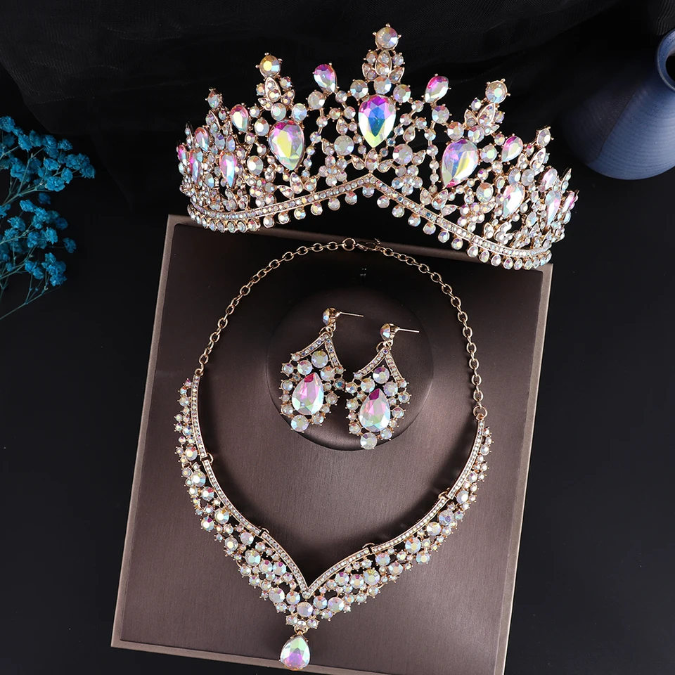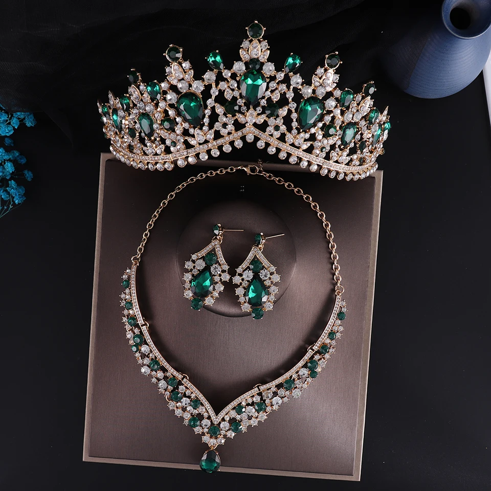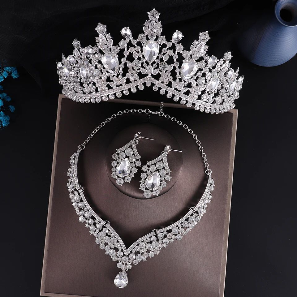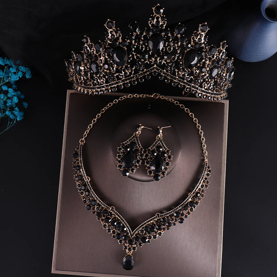 - Type de parures de bijoux: Ensemble de trois pièces avec collier et boucles d’oreilles en forme de couronne