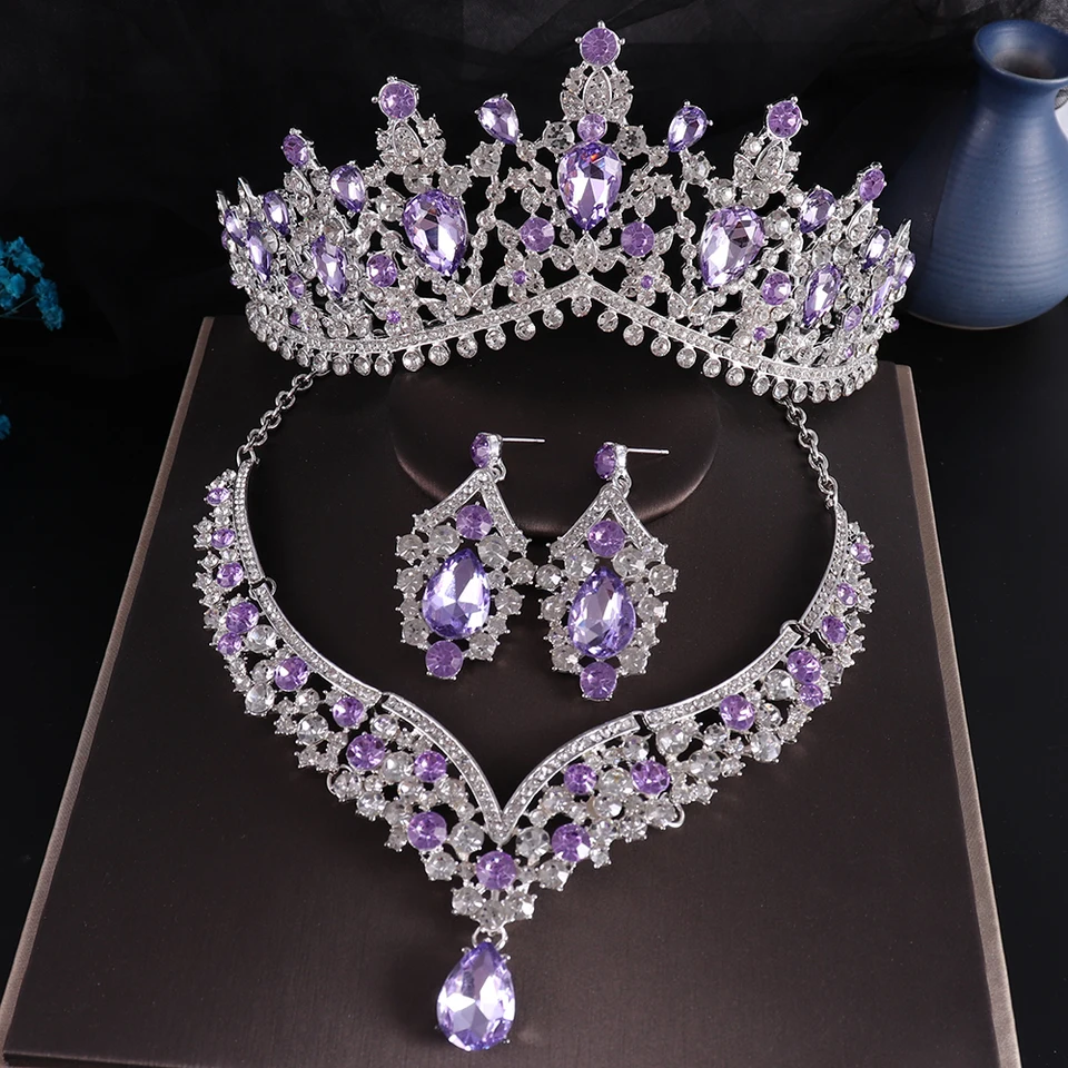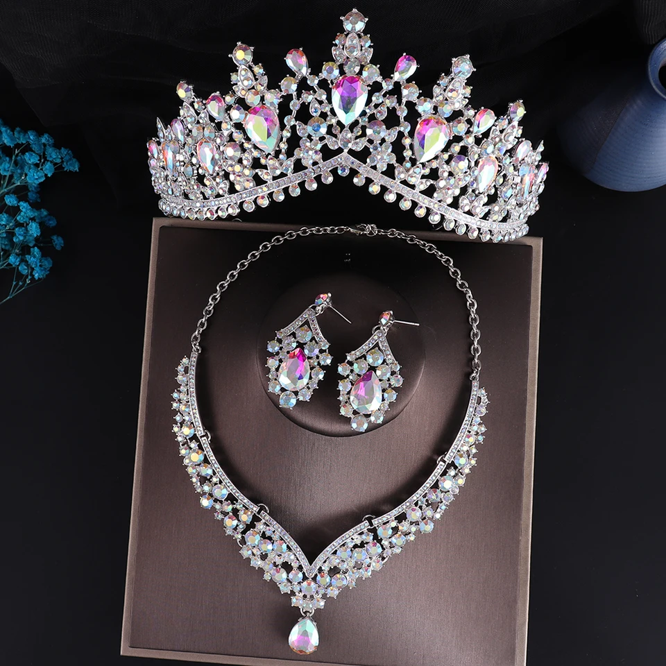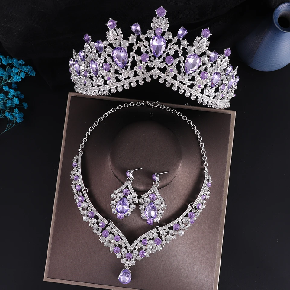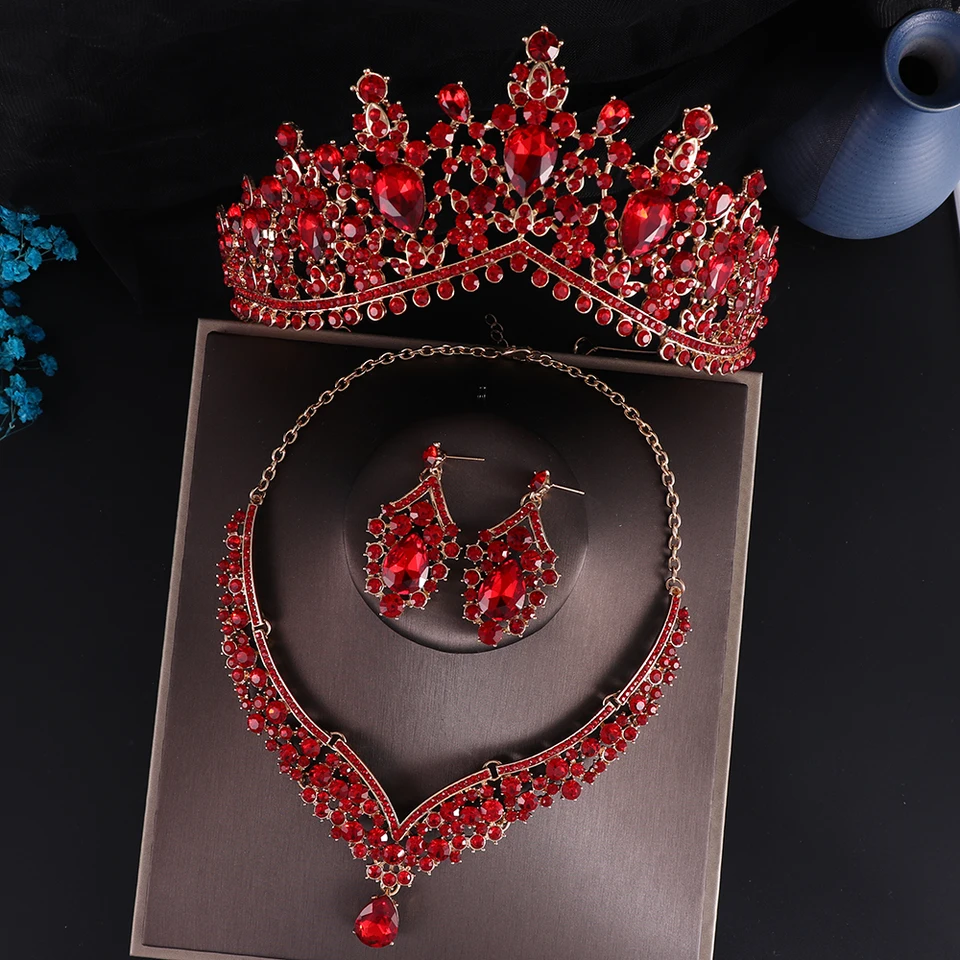 - Type de parures de bijoux: Ensemble de trois pièces avec collier et boucles d’oreilles en forme de couronne