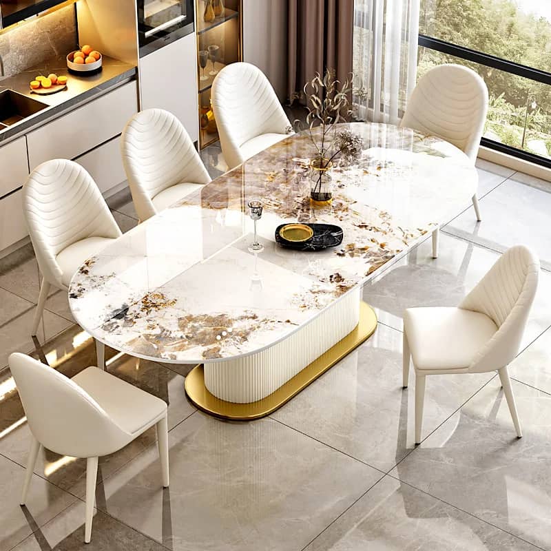 Ensemble de Table à manger avec assiettes en roche crème, Design nordique, avec matériaux en acier, pour la maison, le bureau, le Restaurant, le Bar, dessus en marbre crème