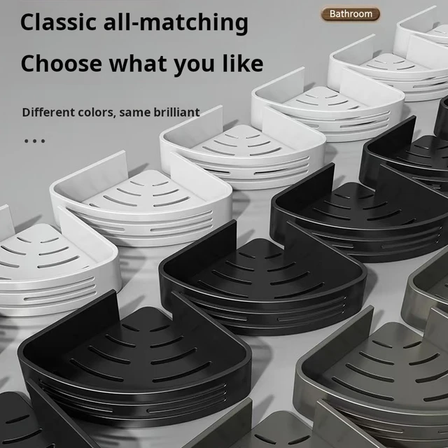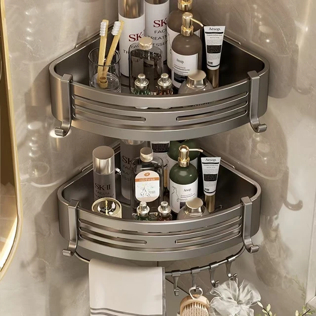 Étagère de rangement d’angle de salle de bain gris pistolet, étagère de rangement murale non perforée