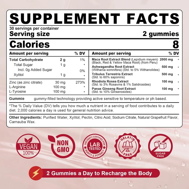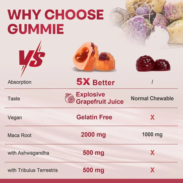 Les gummies énergétiques à la maca, Un aphrodisiaque de marque privée pour adultes qui stimule la vitalité sexuelle et l’amour pour les hommes et les femmes.