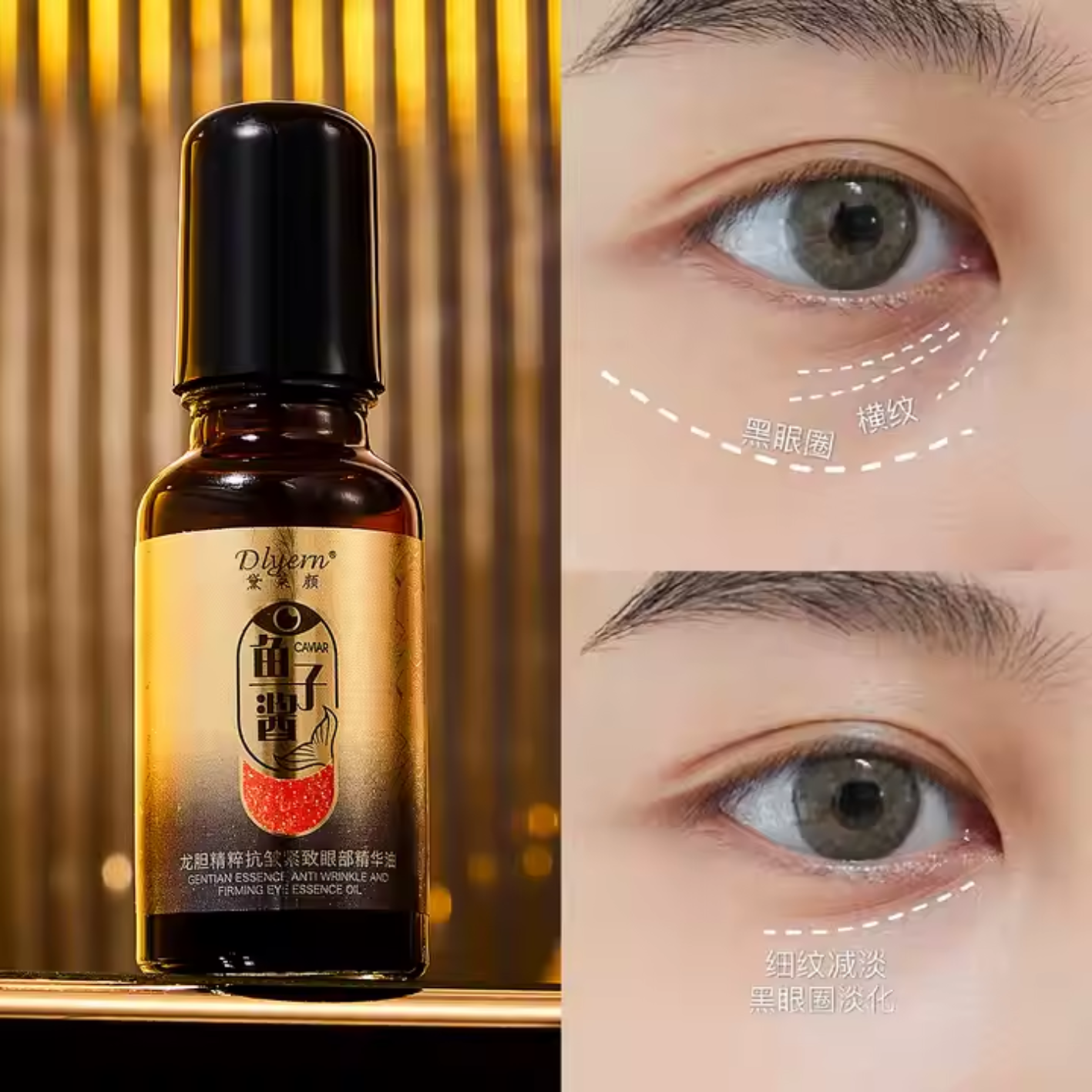 Huile d’essence pour les yeux raffermissante anti-rides, Réduit les ridules autour des yeux.