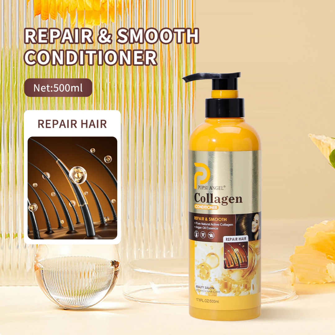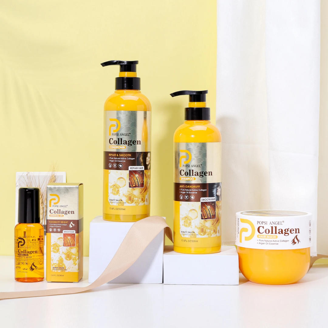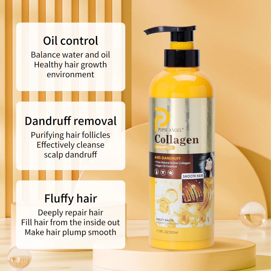 Protéine de collagène naturelle et saine bio Essence d’huile d’argan Shampooing Pellicules Moelleux Hydratant Ensemble de shampoing aux protéines de collagène