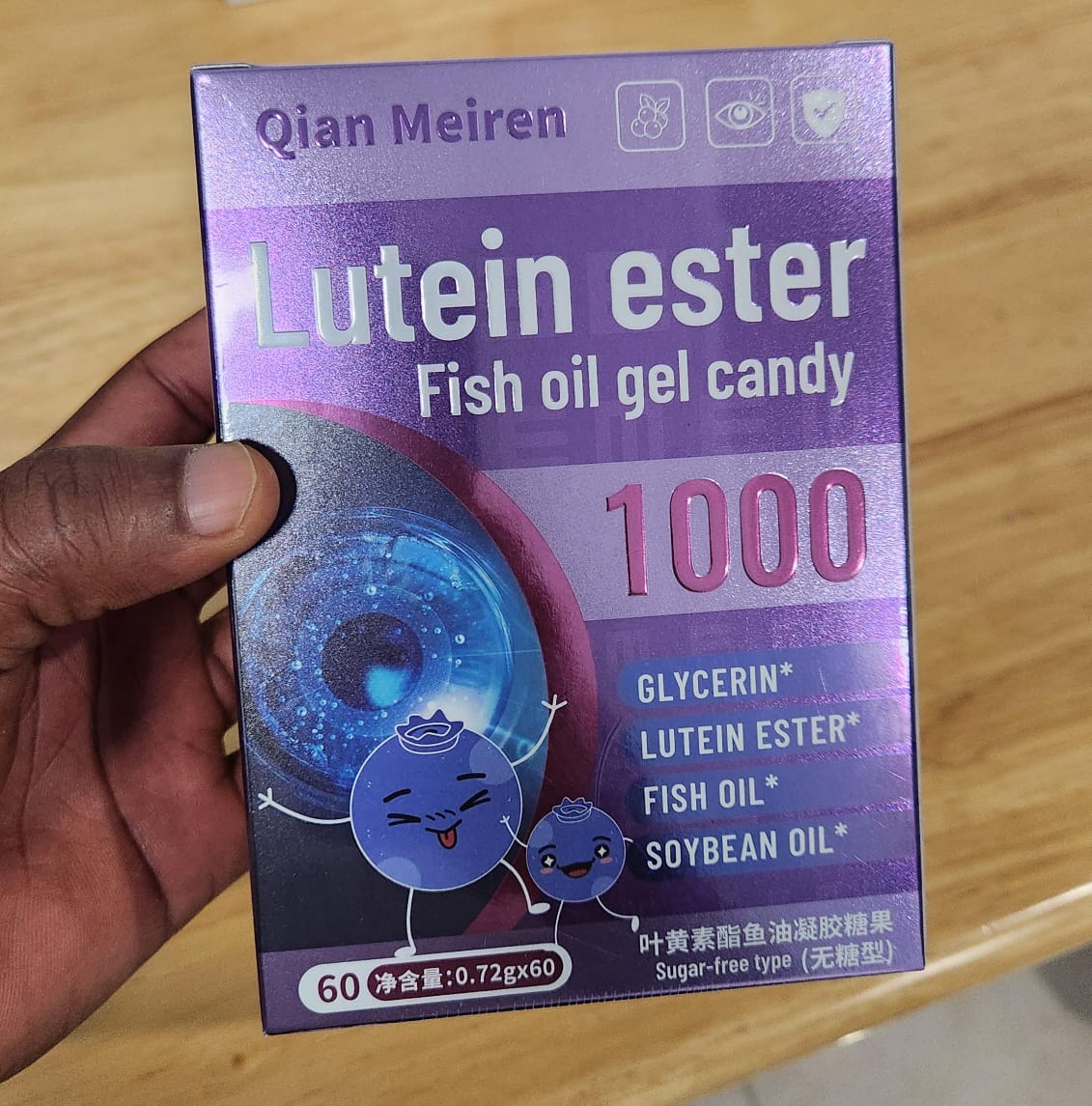 - Type de produit : Complément alimentaire, spécifiquement des bonbons gélifiés à l’huile de poisson et à l’ester de lutéine.