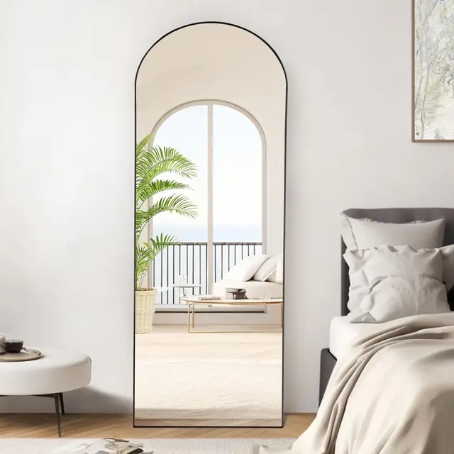 Miroir de sol de luxe avec grand arc encadré pour décoration de la maison.