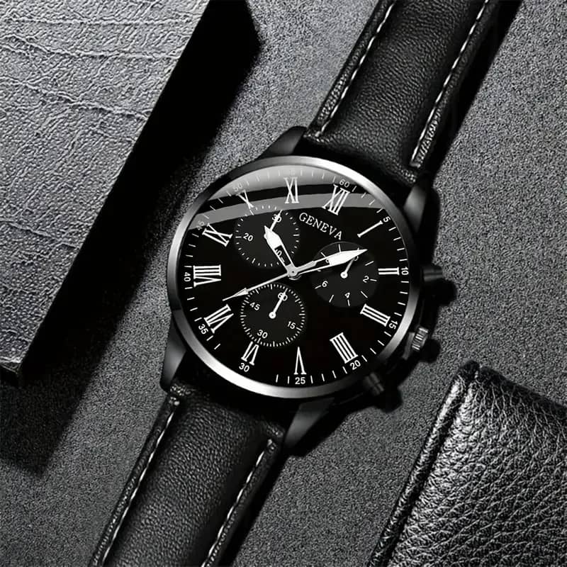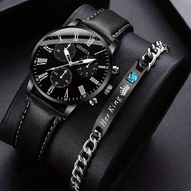 Ensemble de 2 pour montres à quartz noires pour hommes avec bracelet .