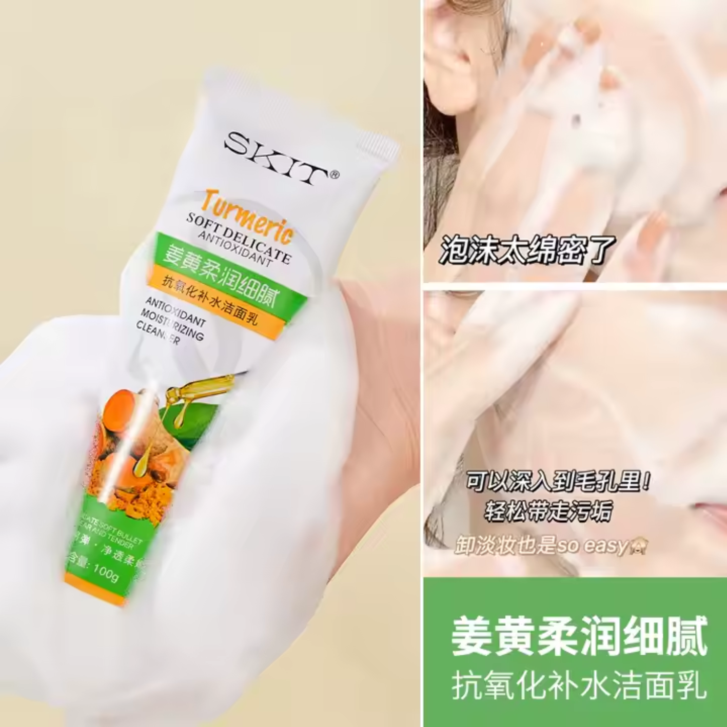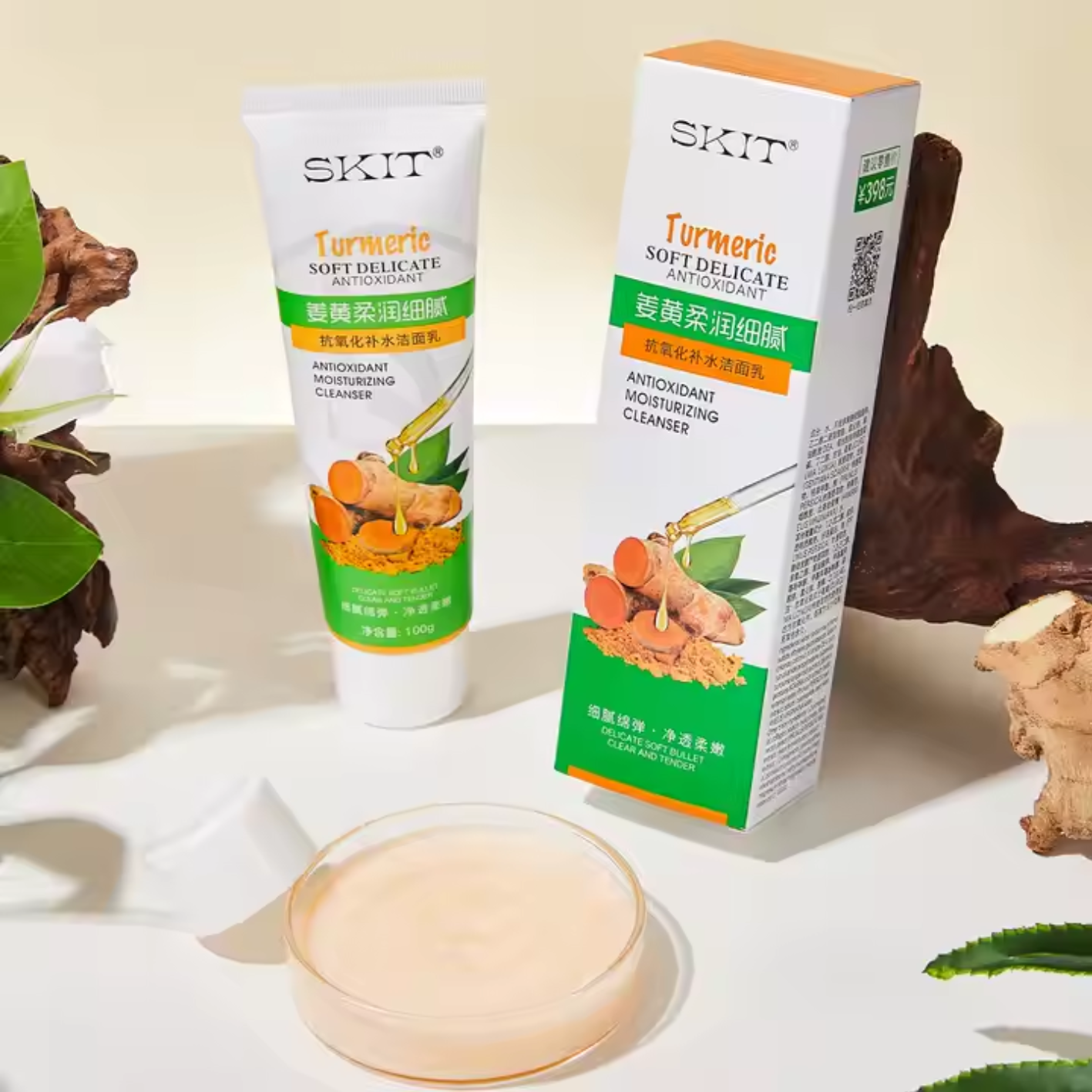 Mousse nettoyante pour le visage au gingembre riche, doux, enlève les points noirs et graisse pour un nettoyage antioxydant de la peau.