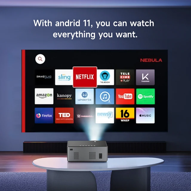 Projecteur intelligent portable mini projecteurs full hd 5G wifi et BT android 11 projecteur de fête extérieur à mise au point automatique