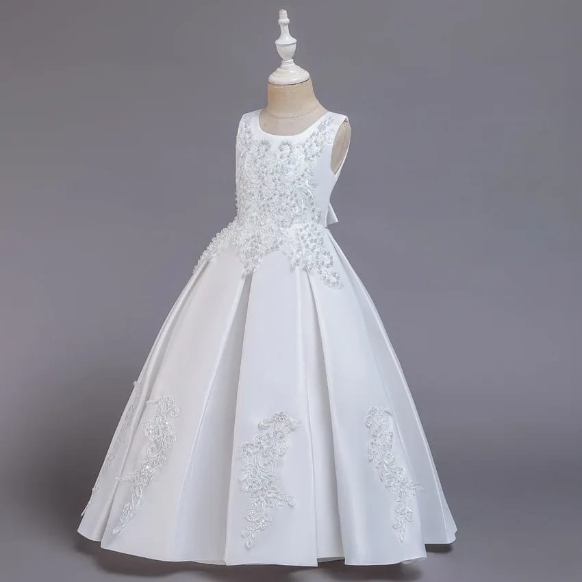 Robes de Cérémonie Princesse Fille en deux tons Sans Manches Robe Brodée Longue de Soirée Mariage