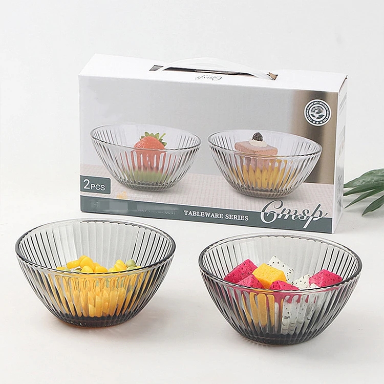 - Nom du produit: Lot de 2 saladiers en verre transparent et 1 bol à soupe avec couvercle