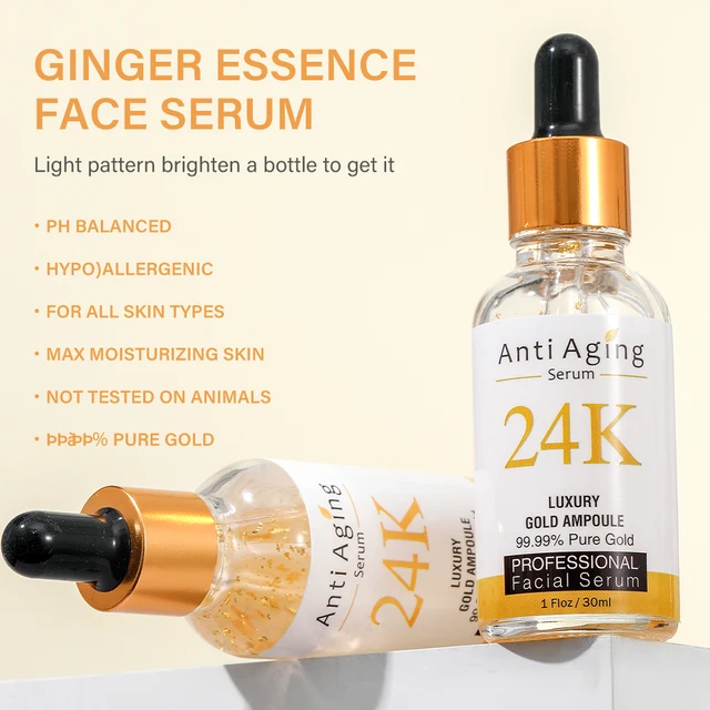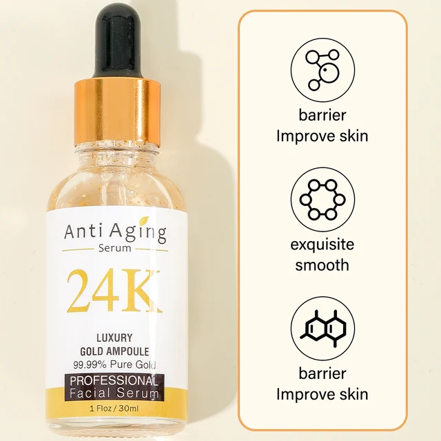 Sérum à l’or 24 carats anti-âge, lissant, hydratant, améliorant la qualité de la peau, soin naturel de la peau, 30 ml