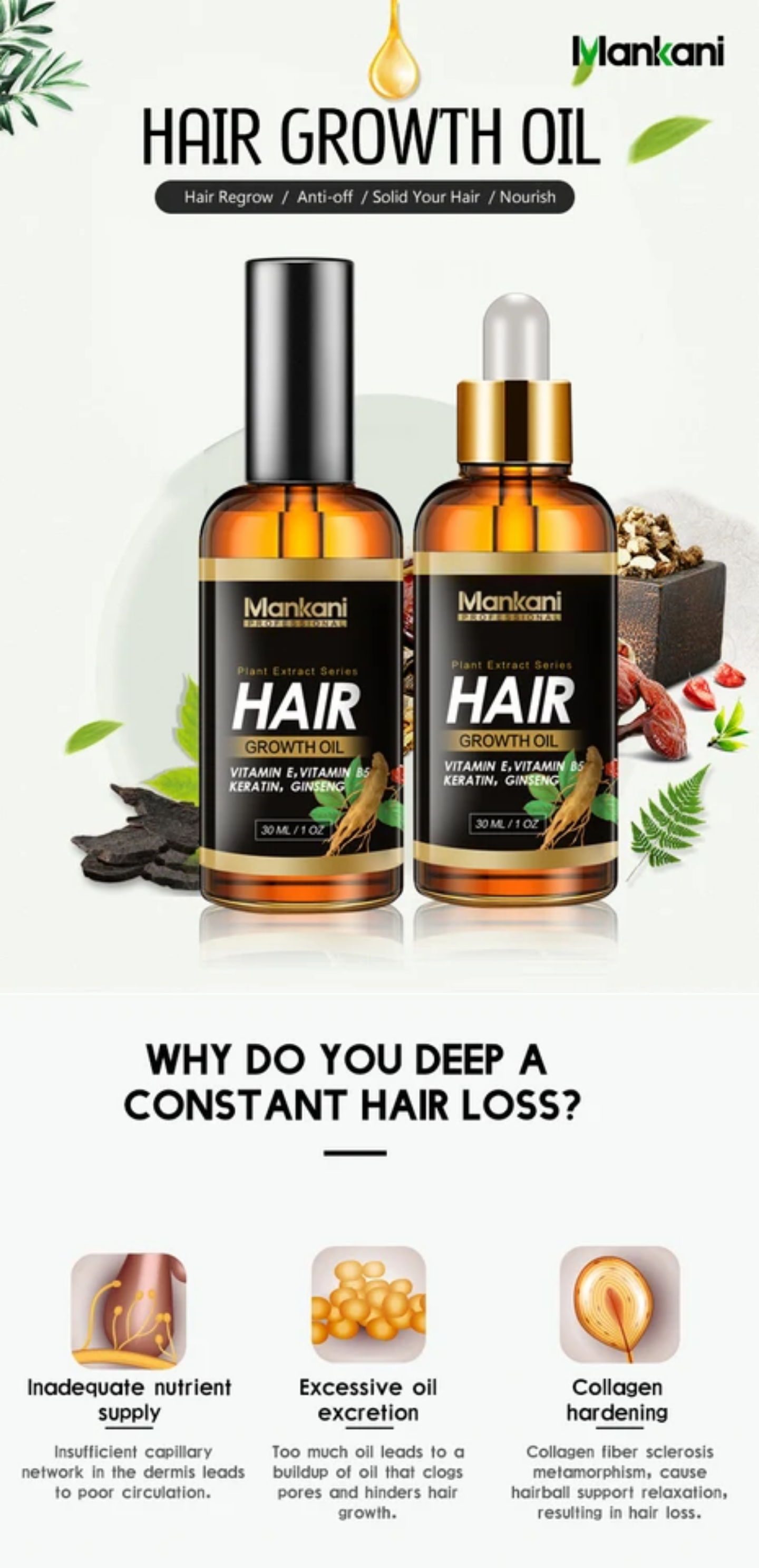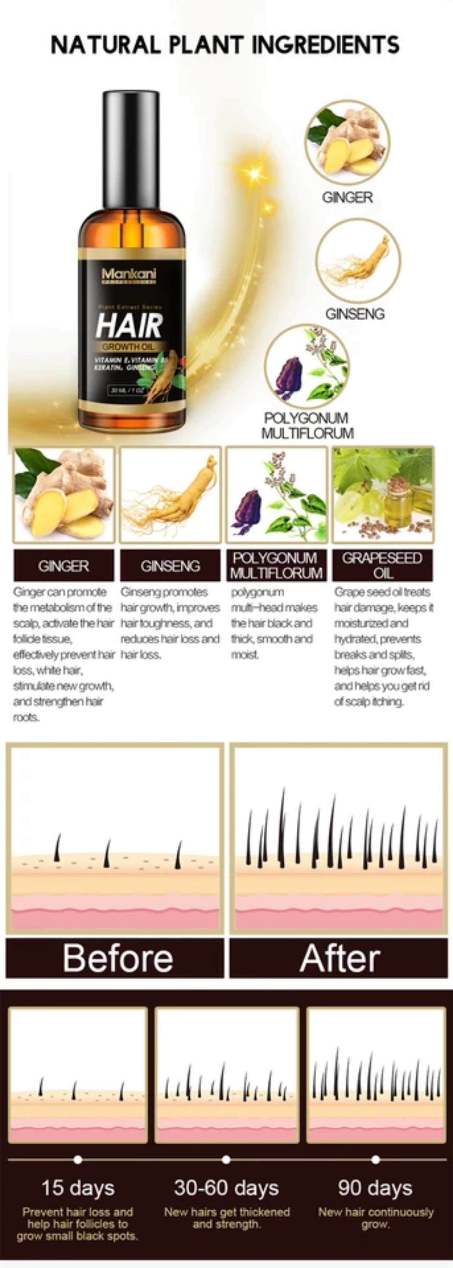 - Nom du produit: Sérum à l’huile pour la croissance des cheveux