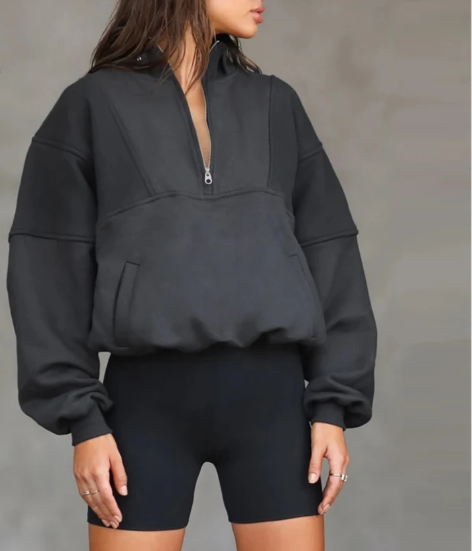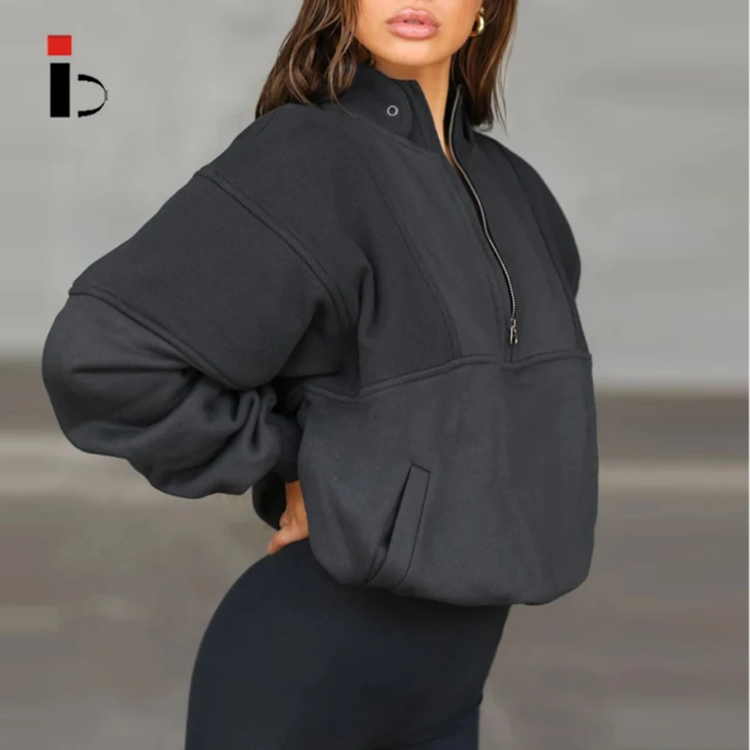 Sweatshirts à capuche en coton et polyester pour femmes sweatshirt à demi-fermeture éclair en polaire de haute.