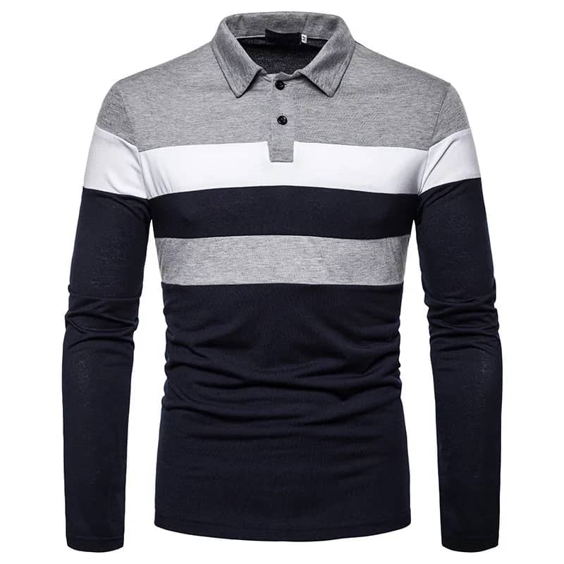 Polo à manches longues pour hommes Chemises décontractées à coupe ajustée T-shirts patchwork de couleurs contrastées pour hommes