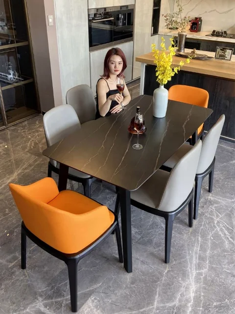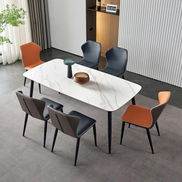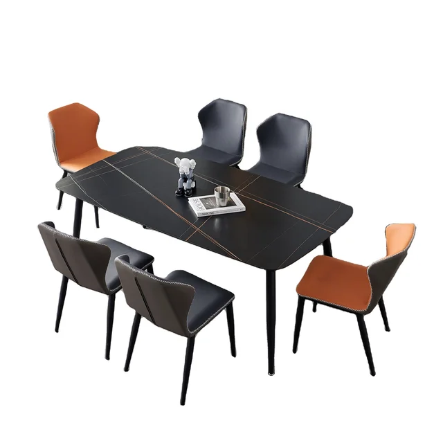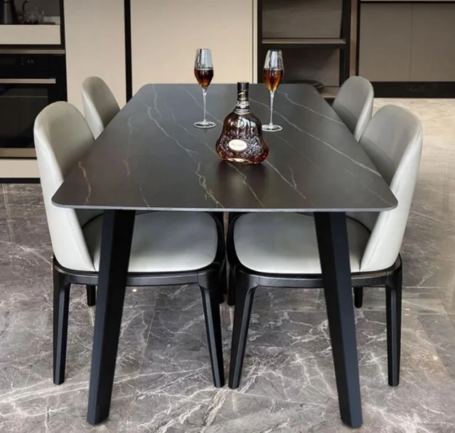 Ensemble de table à manger rectangulaire en marbre artificiel de haut jambe en métal.