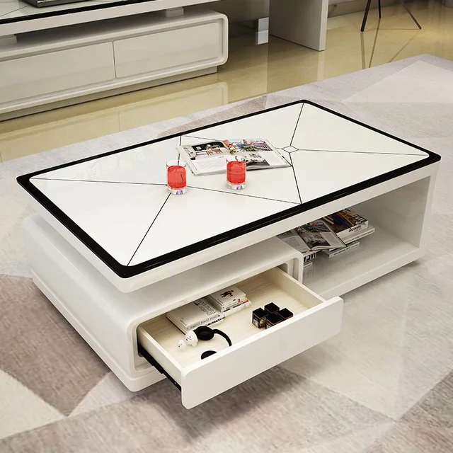Table centrale moderne de luxe avec tiroir pour salon.